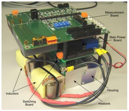 The CoolMOS, IPW90R120C3 被英飞凌选为有源开关。选择该器件是因为其足够高的击穿电压,在低温下的低导通态电阻,最大限度地减少了导通损耗,和高开关率(di/dt和dv/dt),最大限度地减少了开关损耗。使用的两个二极管是硅超快二极管STTH1210D由意法半导体和SiC肖特基二极管C2D20120D由克里。