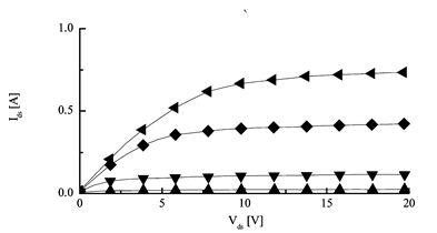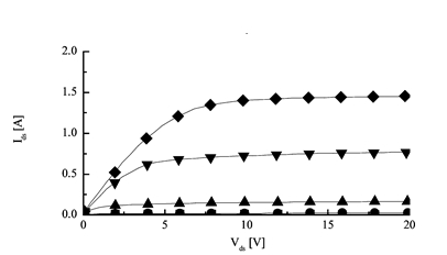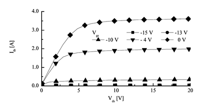该设置包括两个电源,一个用于提供漏-源电压(Vds),另一个用于供应栅极-源极电压(Vgs)。漏-源电压(Vds)从0V逐渐增加到20V,同时保持栅极-源极电压(Vgs)的不同值。为了提供栅极电压,电源提供两个电压电平,较高电平用于栅极电压,较低电平用于关断JFET。使用来自东芝公司的光学隔离栅极驱动器TLP-250将栅极电压施加在DUT上。此外,能够产生任意宽度的栅极脉冲的脉冲发生器被设置为输出40s的ON脉冲,以防止器件由于导通电流而自加热。